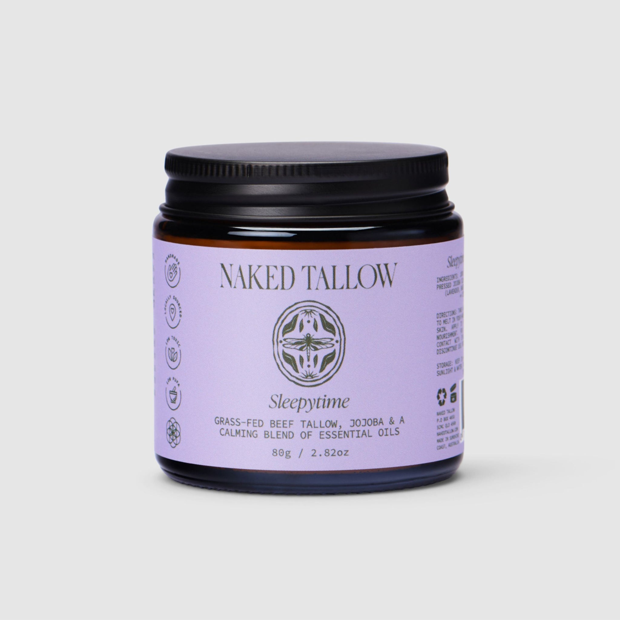 Sleepytime Tallow is a relaxing blend of Lavender, Chamomile and Sweet Orange. Great for whole body use before bed to calm the nervous system and promote restful sleep.